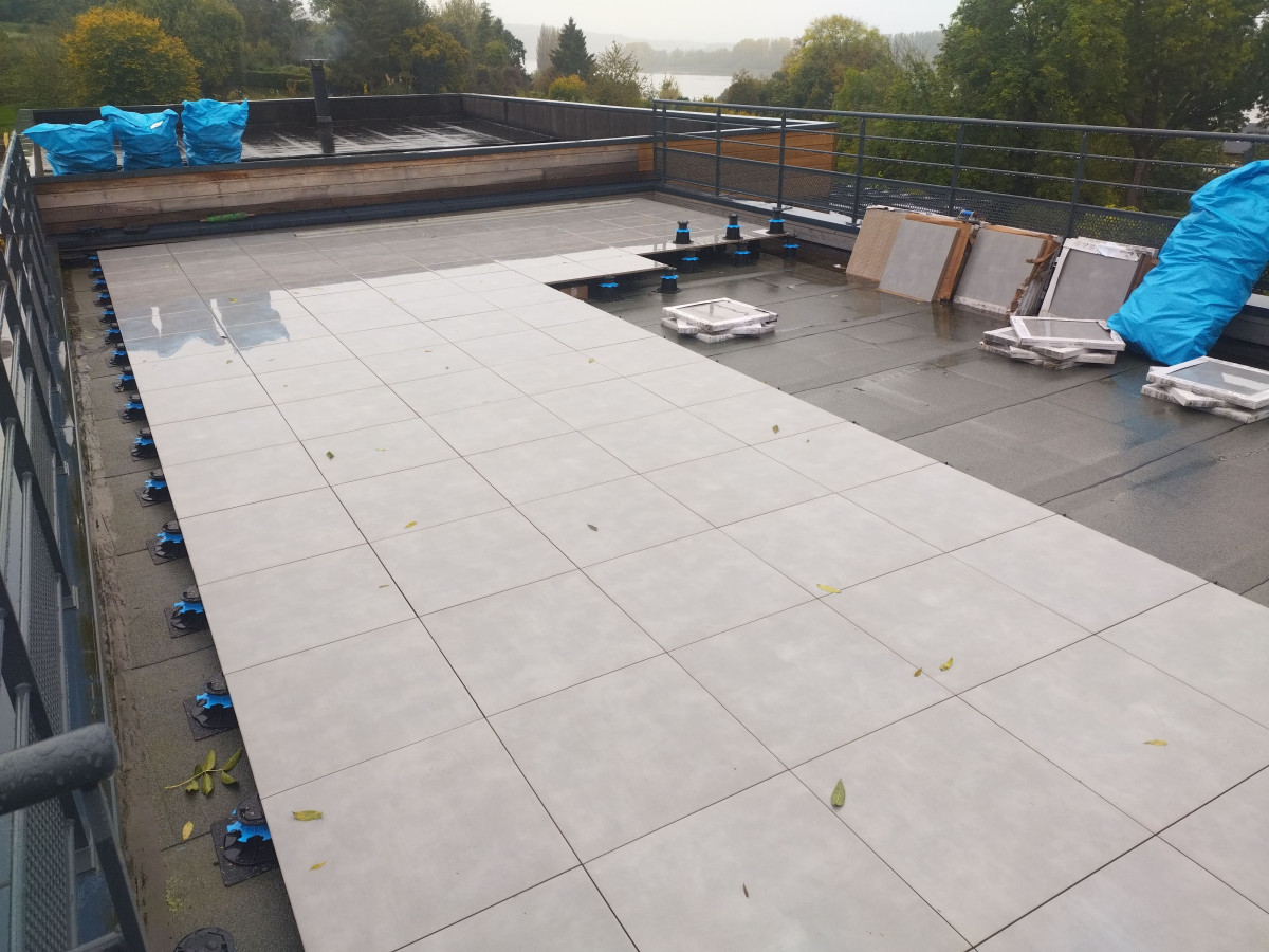 - Pavage, dallage et création de terrasse en bois sur plots, dalle céramique.